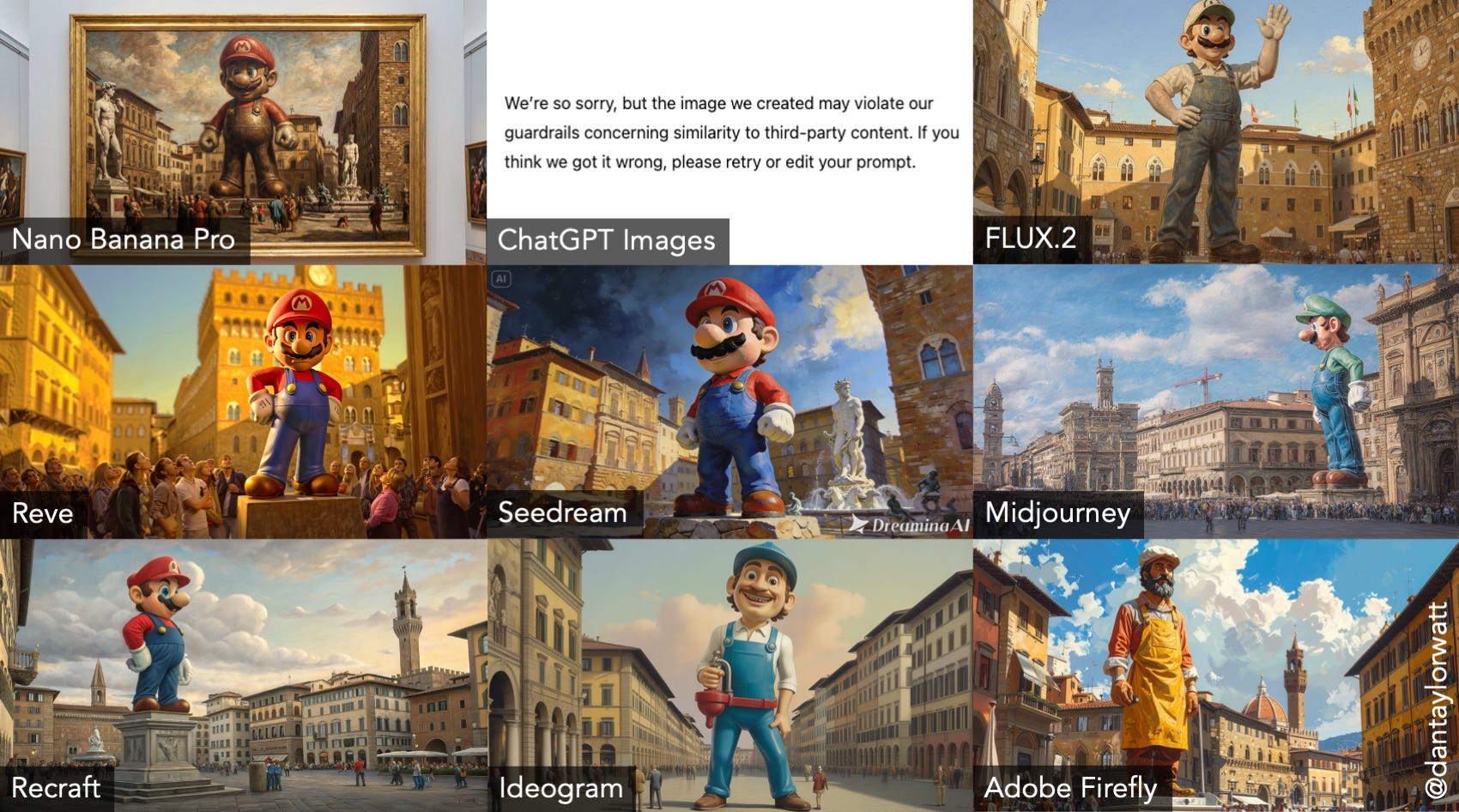 Love this analysis - thanks! I'm interested in the copyright implications. In your image of Mario, the IP infringement is clear. But what if a prompt you use generates something similar to existing IP, but the user has no idea as they are not familiar with that IP? E.g. someone generating an image for a blog post mistakenly uses a character from a 90s cartoon they are unfamiliar with. Is there a way of checking IP infringement before using generated images?